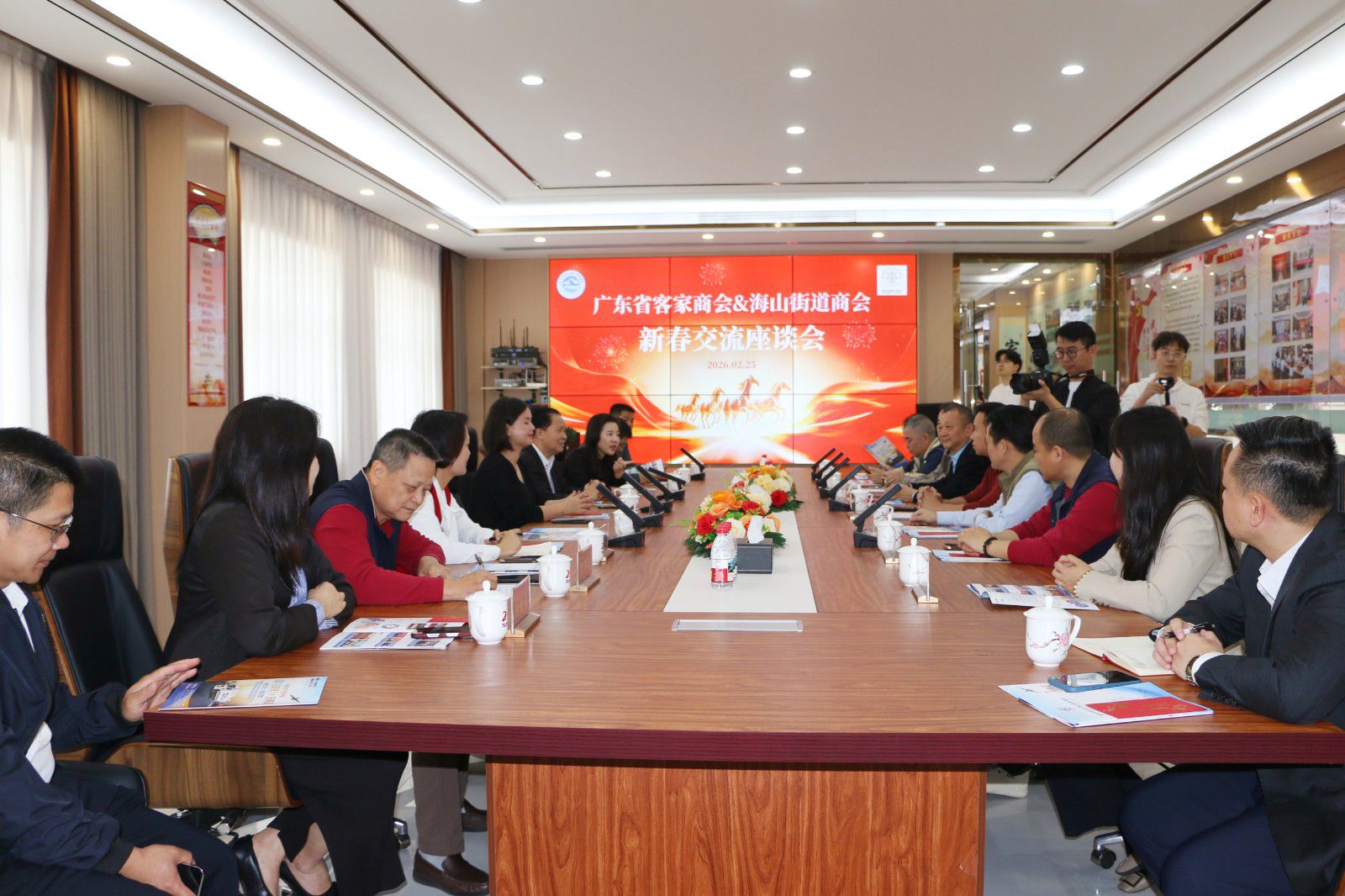 On February 25, 2026, the Guangdong Hakka Chamber of Commerce and the Haishan Street Chamber of Commerce in Yantian District held a Spring Festival gathering in the large conference room on the first floor of the headquarters of Baohengtong Group. Li Sheng, Vice President of Guangdong Hakka Chamber of Commerce and Supervisory Director of Haishan Street Chamber of Commerce, Zou Hong, Director of Guangdong Hakka Chamber of Commerce, Wen Zhiya, Secretary General and Party Branch Secretary of Guangdong Hakka Chamber of Commerce, as well as representatives of the two chambers of commerce, including directors, supervisors, members, and representatives of Construction Bank and Zhejiang Commercial Bank, visited Baohengtong Group. Xiao Dejun, Honorary President of Guangdong Hakka Chamber of Commerce, President of Haishan Street Chamber of Commerce, and Chairman of Baohengtong Group, warmly welcomed them.