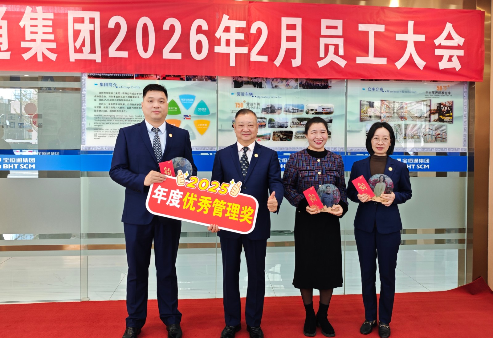 表彰结束后,肖德军董事长部署接下来的工作时表示,2026年,公司以中港物流、“中国—东南亚”跨境物流、多式联运为核心,深耕普货业务开拓与集拼模式创新,要求各部门细化月度目标,强化跨部门协同联动。他鼓励全员主动拥抱变化,紧跟 AI 发展、行业趋势与国际化步伐,以 AI 智能赋能供应链各环节应用和管理升级,以新思维多维度实现工作效率与服务品质双提升。最后,他向全体员工及家属送上马年新春的美好祝福。
