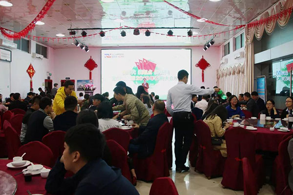 19:00,春萌大会欢庆晚宴开始,集团董事长肖德军向全体员工表达衷心的感谢和祝福,并带领高层团队一起祝酒。